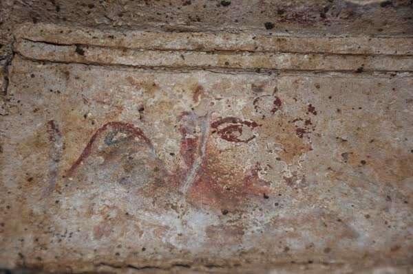 这次发现的有翼天使形象,确切一点来看中央人物是童子形象。在过去考古发现中,阿富汗喀布尔河流域的贝格拉姆城(Begram)宫殿房厅、艾那克(Mes Aynak)和哈达(Hadda)寺院也曾发现使用石灰作为打底层绘制湿壁画的事例。这件法国考古学家在1926-1927年在特佩卡兰寺院(Tapa Kalan)发现、现藏于法国吉美博物馆的佛龛为代表,这座佛龛内结跏趺坐佛陀上方壁面上绘有一对手持花绳的“有翼天使”。 这里的“有翼天使”是全裸的童子像,与贝格拉姆发现、同样藏于美博物馆的石膏板上表现的天使形象基本一致,与罗马传统更为接近。我们在同时期的罗马帝国的庞贝古城中壁画第四种样式风格(约公元62-79)中也可以找到这些熟悉的图像,这一时期尼禄皇帝(Nero,公元37-68)治理下的罗马开始兴建大型宫殿建筑,新的建筑空间和装饰艺术开始流行,在建筑天井和壁面上经常绘制有翼小天使(Amorino)形象。同时期的一些大理石棺椁雕刻也继承该种样式,出现有一对“有翼童子”手持墓主人肖像送别题材的场景。而稍晚些时间在深受罗马文化影响的叙利亚,在纪元109年帕尔米拉(Palmyra)墓葬美术中,常出现一对有翼女神在墓主人胸像后托举圆形物雕刻,表达送别墓主人升向天国的瞬间,这也是对该题材的发扬传播。
