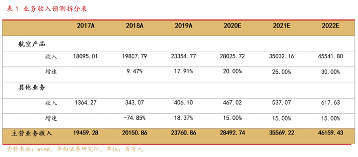 对公司业绩进行如下预测:航空产品方面,随着景气度的逐渐释放,预计2020-2022年航空主业营收增速分别为20%、25%、30%,随着产品放量,规模效应显现,毛利率逐渐提升,分别为9%、9.3%、9.5%;其他业务方面,营收保持15%增速,毛利率维持7%。基于以上假设,预计公司2020-2022年实现营收284.93/355.69/461.59亿元,归母净利润14.86/16.71/21.43亿元,EPS为1.06/1.19/1.53元,对应PE为71/63/49倍。公司是国内战斗机整机领域唯一上市公司,行业龙头地位稳固,受益于军用航空装备高景气周期来临,公司未来营收增长动力充沛,首次覆盖,给予买入评级。