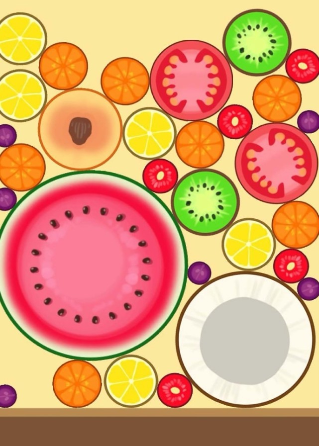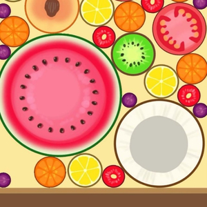 通过控制不同水果的掉落位置,伴随着清脆的掉落声效,“砰”的一声,两个小葡萄合成了一个面积略大的车厘子,合成的车厘子再进一步地合成更大的水果,大西瓜则是一连串合成进化的终点。