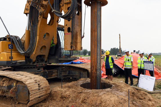 2020年6月29日,在山东聊城市茌平县,中铁上海局工作人员对郑济铁路山东段长清黄河特大桥桩基进行开钻作业。图 | 新华社