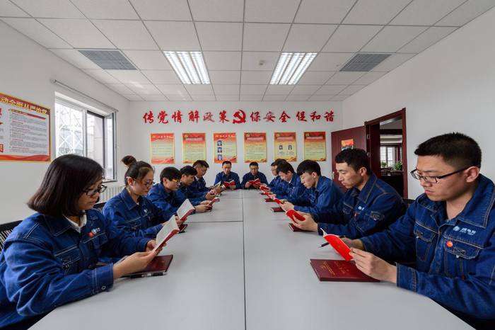 1000千伏锡盟站党员集中学习党章。(摄影:李广杰)