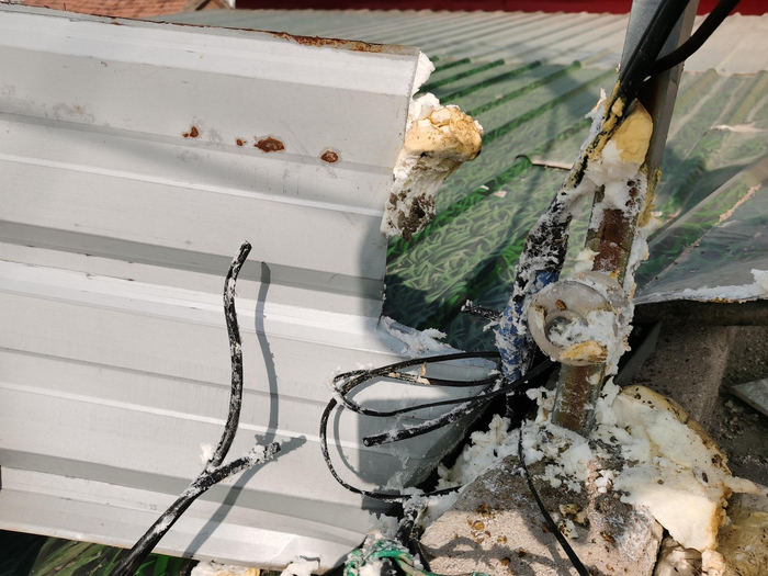 2月3日,在黄东公变台区电表箱迁移现场,周涛终于发现了问题。原来,用户姜某某用新建院墙屋顶铁皮瓦做掩护,在下火线至铁皮瓦的间隙私自接了与下火线同颜色的两根电线进行用电,唯恐被识破,周围全部用泡沫胶封堵起来。现场拍照取证后,面对证据,姜某某在用电检查单上签下自己的名字,缴纳违约和追补电费金额5298元。