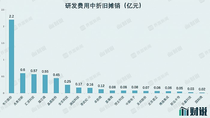 以2020年半年报为例。A股70亿市值以上的Fabless(无晶圆)芯片设计公司的研发费用中,折旧和摊销最高的是韦尔股份(603501.SH)为2.2亿元,最低的是国科微(300672.SZ)为165.6万元。