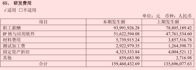 以瑞芯微(603893.SH)为例。2020年上半年公司的研发费用是1.59亿元,其中职工薪酬是9399万元,IP核与应用软件花了5162万元,固定资产折旧是432万元。