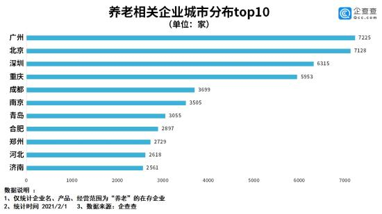 据企查查数据,目前我国共有20.3万家养老机构,主要分布在广州、北京、深圳、重庆、成都等经济较发达城市。