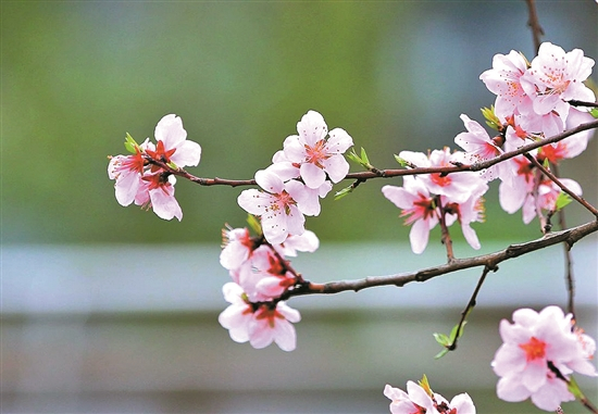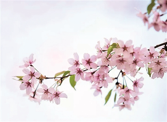 从花型上也能看出区别。它们都有五瓣,也都有重瓣的品种。樱花的花瓣数量有时能多到20瓣甚至更多。但梅花花瓣看着更有厚重感,颜色也更丰富且浓烈、艳丽,有红、白、黄甚至绿色之分,花朵通常是单朵开放在枝头,但分布较密集,花梗偏短;桃花花梗更短甚至没有,花朵也是独立开放,且每朵花之间相对稀疏,颜色较浅,多为粉白色,大多数桃花花瓣上还会有个小缺口,叫“花裂”;樱花通常都没有“花裂”,且有长长的花梗,一根花梗上会成簇地开出好几朵花。