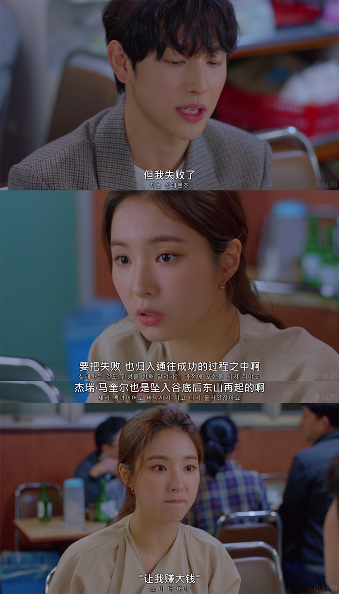 美珠和善谦闹别扭后,善谦试图用这个“电影语言”与她和好,结果被映禾打断了;美珠跑完马拉松,善谦在终点等她时,两人也终于完成了一次“心意”的传递。