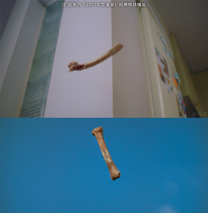 善谦醉酒后被美珠背回家,第二天,美珠的同居人请他喝汤,丢到垃圾桶的那根骨头,致敬的是《2001太空漫游》(2001: A Space Odyssey)的经典转场镜头。