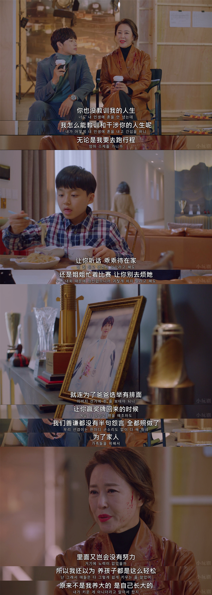 这一段善谦去片场给妈妈探班的母子谈心,解释了男主个性被动、在外人看来沉默寡言的根本原因——他一直是被丢下的那个人。
