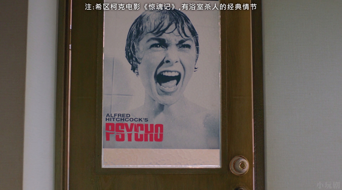 吴美珠家的浴室门口,贴着希区柯克的电影《惊魂记》(Psycho)海报,其中有一段浴室杀人的情节。电影知识几乎为零的奇善谦,自然一头雾水,但是男二李映禾第一次去她家喝咖啡,马上就get到了这个梗。