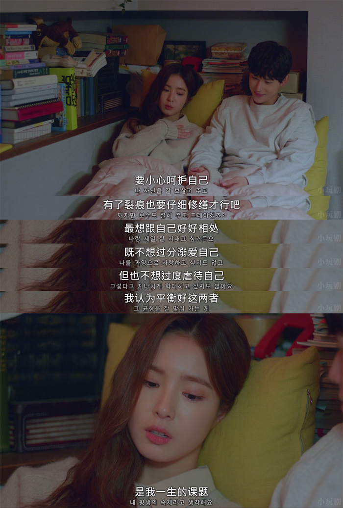 男主遇到糟心事,想一个人死扛,她会提醒他舒压,“不想做就别做,人不是每时每刻都必须克服的,周末可以休息。”↓↓