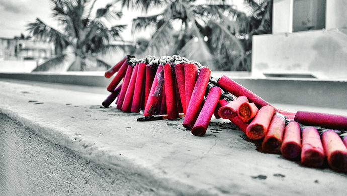 切忌在燃放过程中嬉笑打闹,更不可将爆竹内的药剂挖出来把玩。