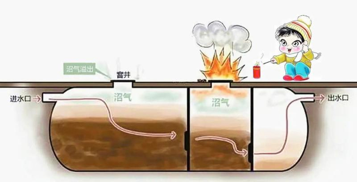 假设一个250立方米的化粪池里存了一半的废水和粪渣,就有125立方米的混合空气,这些混合空气中又含有15%甲烷,我们可以得到18.75立方米的甲烷气体。