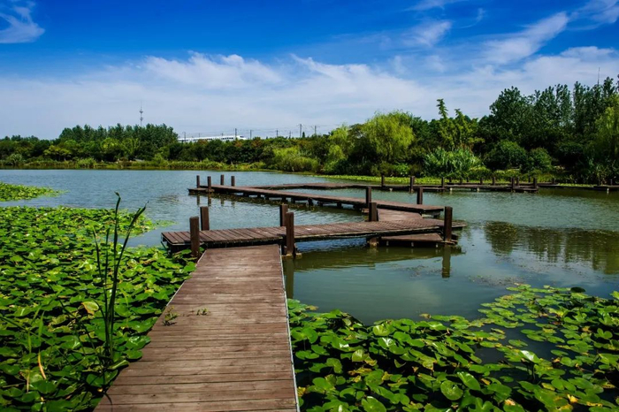 江苏昆山天福国家湿地公园位于花桥经济开发区最北部,规划总面积779.54公顷,由河流、沼泽、林地、池塘、人工湖和稻田等组成,湿地面积495.94公顷,湿地率63.62%。