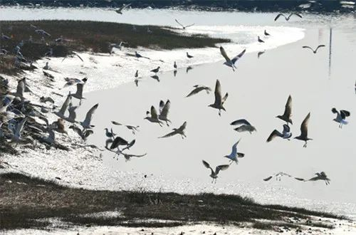 湿地鸟类资源丰富,是候鸟从西伯利亚迁徙至澳大利亚的重要中转站,目前已记录鸟类220余种,隶属于18目45科,包括近危鸟种青头潜鸭、罗纹鸭、黑尾塍鹬、白腰杓鹬、大杓鹬和震旦鸦雀,脆弱鸟种卷羽鹈鹕、遗鸥和黄胸鹀;还有被列入国家重点保护野生动物名录的普通鵟、红隼、环颈雉和小杓鹬。鹭鸟数量最多,白鹭、苍鹭、夜鹭等鹭鸟齐飞,让您真正感受鹭鸟天堂的壮观。另外,还有环颈鸻、金眶鸻群居浅滩;红嘴鸥、青脚鹬展翅翱翔,勾勒出一幅和谐恬静的自然画面。