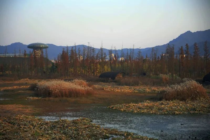 这里植物资源丰富,水生植物众多,如千屈菜、黄花鸢尾、再力花、菖蒲、香蒲、旱伞草、睡莲,良好的生活环境为鸟儿提供了越冬的食粮,吸引着鸟儿们在此停留栖息。