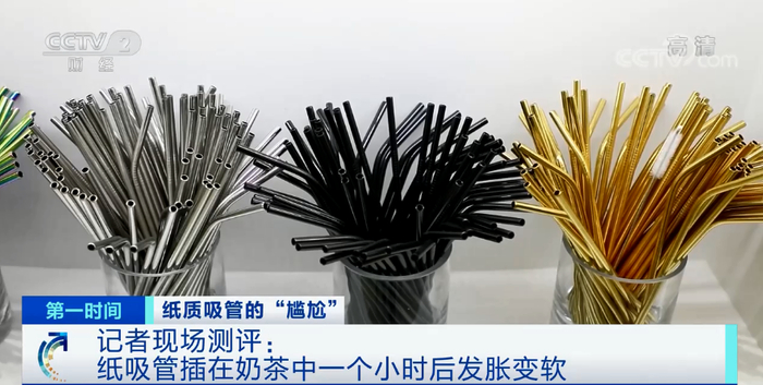 针对纸吸管使用体验不好的情况,记者也对一些奶茶店的吸管做了一个对比测评,结果怎么样?