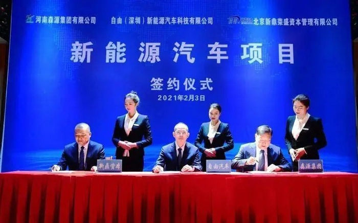 刚刚成立的自由汽车已迫不及待开展行动。近日,其与河南森源集团有限公司(以下简称“森源集团”)和北京新鼎荣盛资本管理有限公司(以下简称“新鼎资本”)已就新能源汽车项目举行签约仪式,正式达成合作。