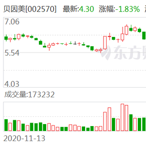 值得注意的是,今年以来,贝因美股价一路震荡走低,累计跌幅超30%。