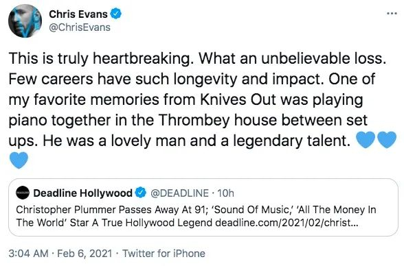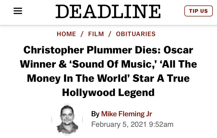 《音乐之声》中的“冯・特拉普上校”、好莱坞传奇男星克里斯托弗·普卢默(Christopher Plummer)于当地时间2月5日在其美国康涅狄格州的家中去世,终年91岁。