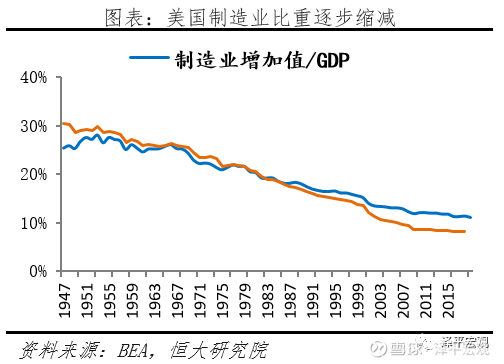 二是落入“产业空心化”陷阱,收入差距拉大。伴随全球化程度加深,制造业产业链向发展中国家转移,美国产业空心化,美国制造业增加值占GDP的比重由20世纪50年代的25%大幅降至目前的11%,制造业就业人数比重则由30%降至8%,贫富差距分化,美国中下层阶级受损,民粹主义盛行。