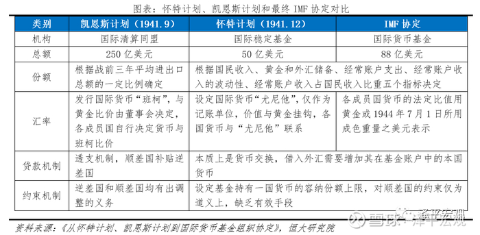 布雷顿森林体系正式确立美元的国际货币地位。1944年,英美等同盟国共同商讨重建世界货币体系,代表英国利益的“凯恩斯计划”主张设立全球央行并根据国际收支情况发行世界货币;而代表美国利益的“怀特计划”坚决主张挂钩黄金。最终布雷顿森林体系采纳了怀特方案,35美元可兑换1盎司黄金,各国货币与美元挂钩。