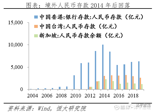 投融资层面,长期以来,我国资本账户不可自由兑换,跨境贸易投放的人民币回流境内渠道不畅,在境外形成资金池,催生香港、新加坡等离岸市场迅速崛起,离岸人民币存贷款、债券等业务2014年达到顶峰。但离岸和在岸市场存在套利空间,不利于汇率稳定。2015年811汇改后离岸市场规模有所回落,当前国家加大国内金融市场开放力度,打通QFII、港股通等多种回流渠道,引导外资投向在岸金融市场。