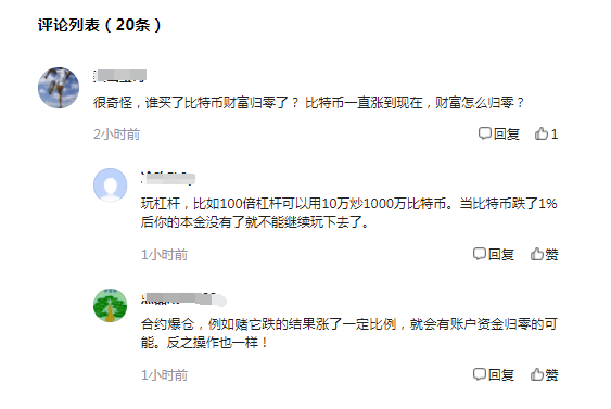 对此,还有不明白的投资在评论说,比特币一直涨到现在,财富怎么会归零?