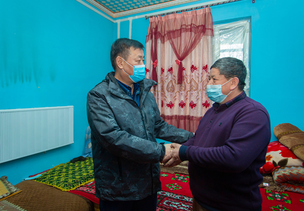 2020年3月10日,熊剑来到距和田市170多公里的“抵边村”奥米夏村电网升级改造现场,看望慰问施工人员,查看疫情防控、施工安全是否落实到位。高原降雪给施工带来不小挑战,他与现场人员一起商量解决方案,保证工程顺利推进。