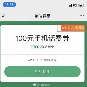 根据中新网的报道,已有超166万人领取了这样的话费券。如果按每个人支付19.9元来计算,涉及的总金额已超3000万元。