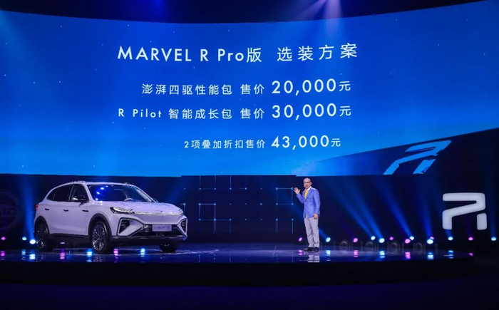 在5G智能座舱方面,MARVEL R车内搭载12.3英寸液晶仪表盘、19.4英寸康宁大猩猩玻璃触控面板、双摄识别系统等前沿硬件,匹配斑马智行VENUS系统,让人车关系实现从交互向交流的升级,为用户兑现出行想象。