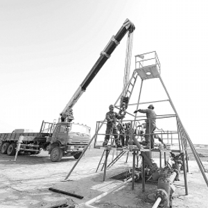 ?西北油田雅克拉气田YK5H井井口作业现场。 吴 昉 摄