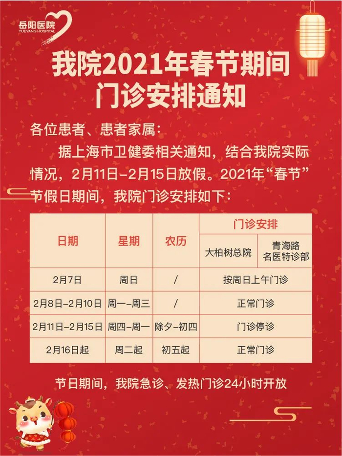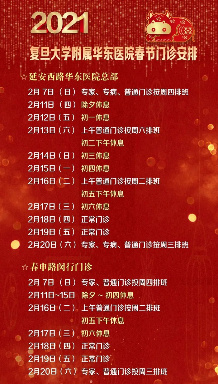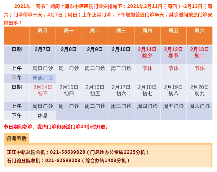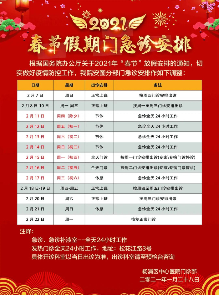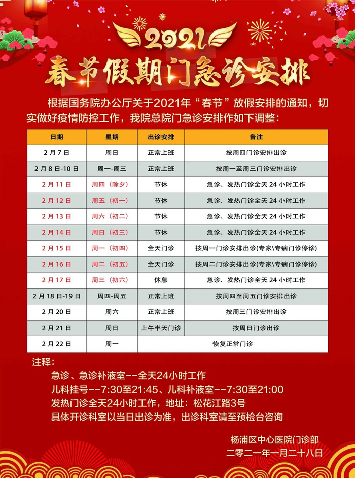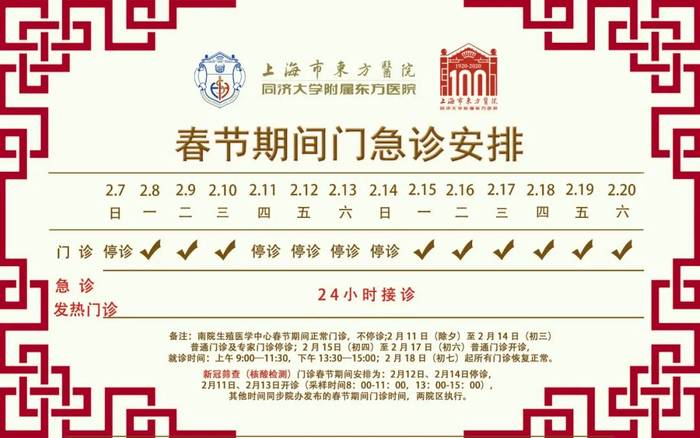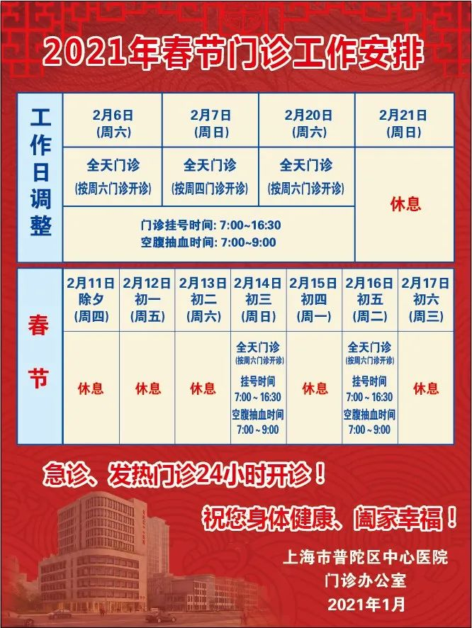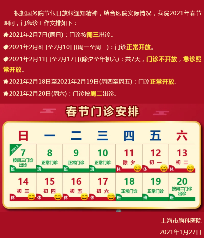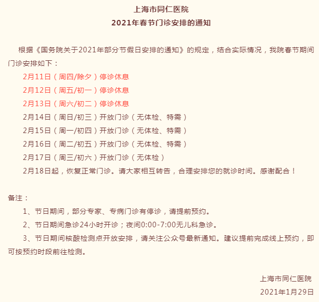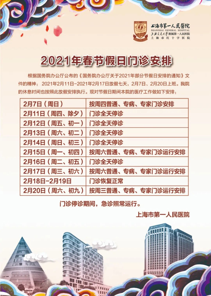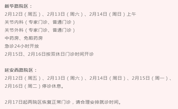 【最新】沪上三级医院春节假期门急诊安排一览