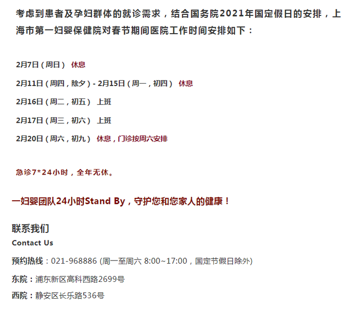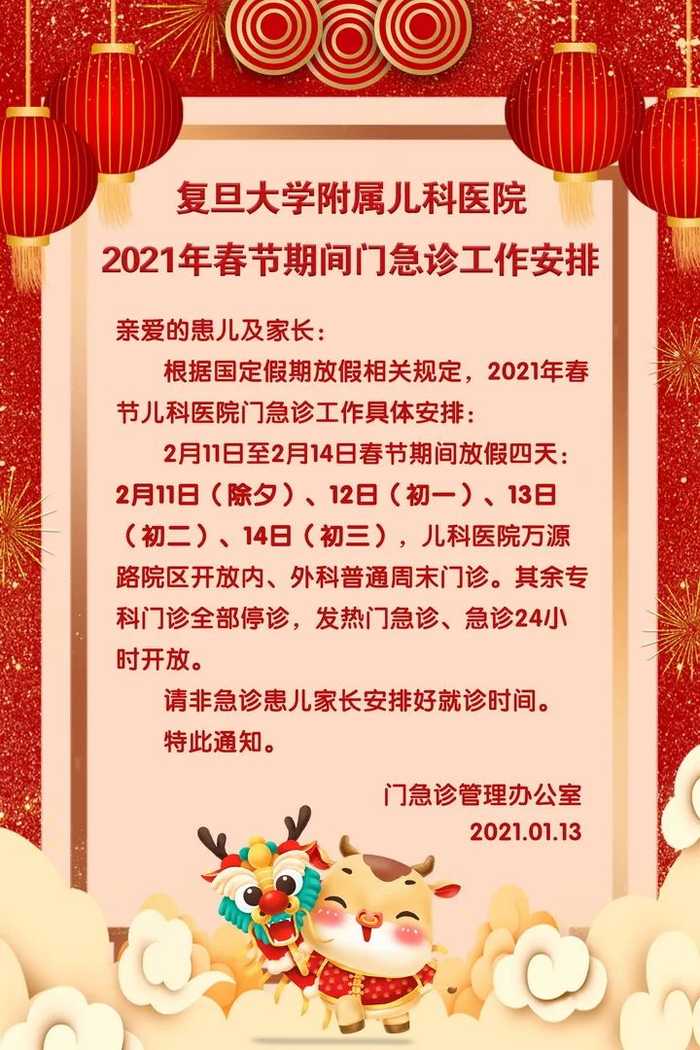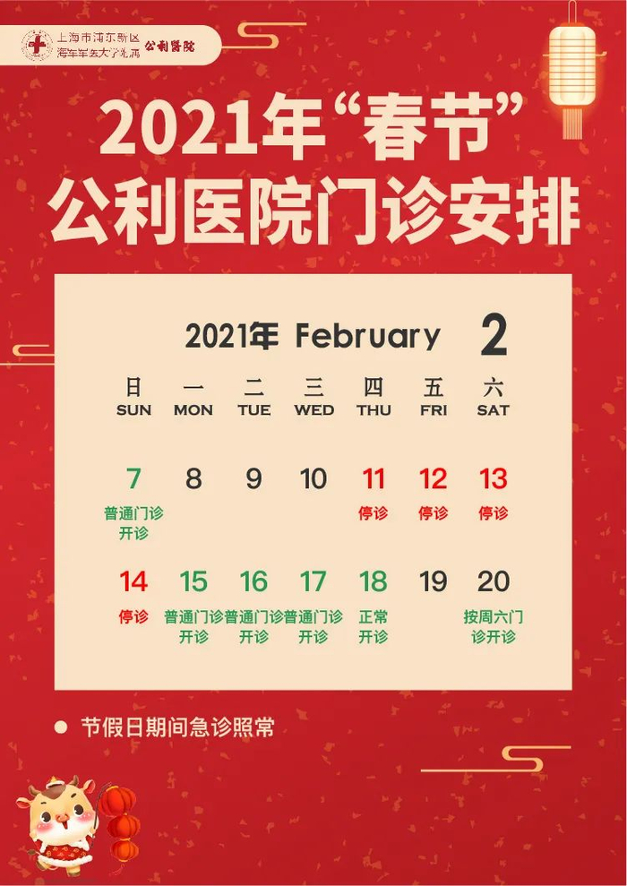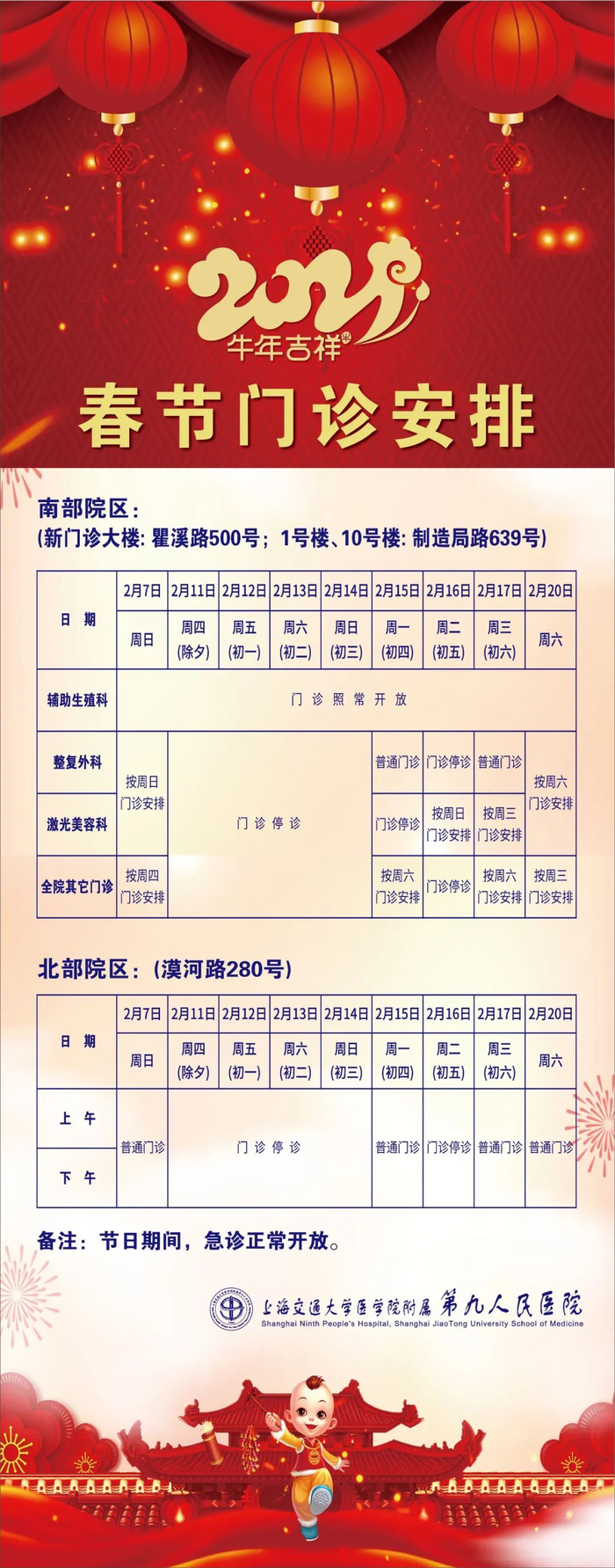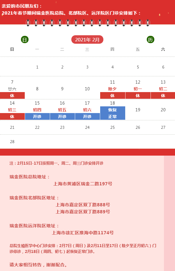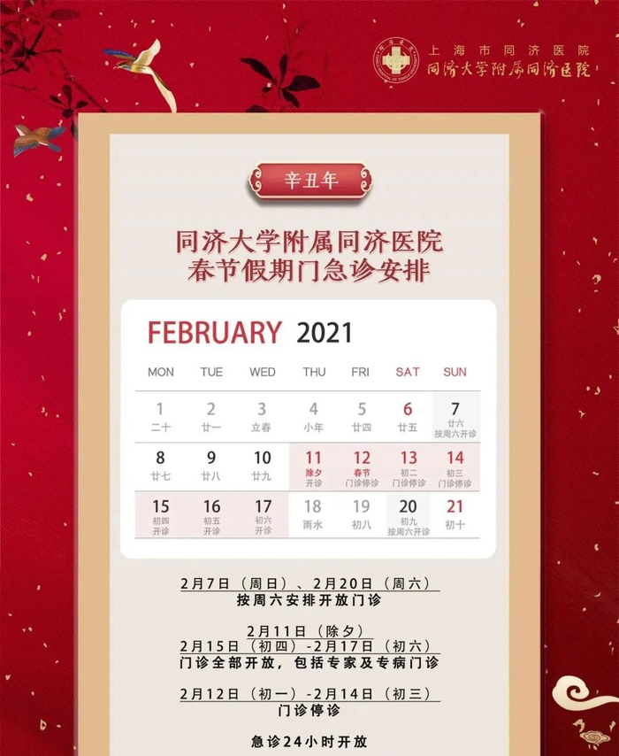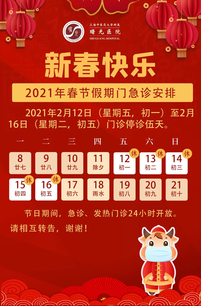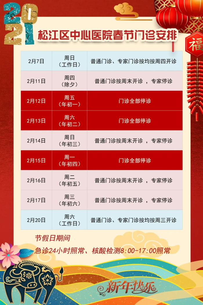 【最新】沪上三级医院春节假期门急诊安排一览