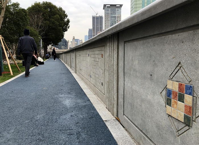 “苏州河沿岸还有不少红色景点和工业遗存,岸线景观如何与这些城市记忆相得益彰也需要做好规划”,市民李先生关心苏州河岸线的文化内涵。他以四行仓库为例,称四行仓库前的一段苏州河步道防汛墙采用了雕刻花纹配以方形马赛克砖的装饰方案,看起来是挺美观。但考虑到四行仓库是一个红色景点,花哨的装饰也许还不如朴素的灰墙来得协调,而如果能对这段防汛墙进行设计,嵌入一些与四行仓库历史相关的元素,岂不更好?