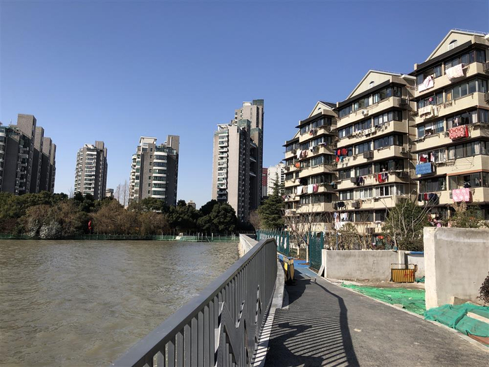 除了找不到厕所之外,一些市民还反映苏州河岸线其他的设施不足。市民杨女士称,她陪家中老人从华阳路万航渡路附近进入苏州河南岸的慢行步道向西散步。这段苏州河向北折了一个大弯,南岸步道属于长宁区,较早实现贯通,向西一直延伸至凯旋路桥下方中山公园3号门处,途经华东政法大学,闹中取静,是散步的好去处。但美中不足的是,整段步道除了东西两个出入口之外,中间别无出口,“老人走了一半觉得累,想放弃而不能,只能硬着头皮走完或原路返回。”记者日前来到这段步道体验:走完整条1公里多的步道需近20分钟,中间除了途经小区设有刷卡门禁外,的确没有其他出口。不过,受条件和地形所限,要给这段步道增添出口或通道并不容易,或许在中途添置一些休憩设施更为合理。