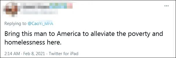 在曹毅的这条推文下面,中外网民产生了共鸣:“这是我见过的最震撼人心的视频之一”、“人们喜爱并尊重那些真正关心他们的人”、“这位领导者不仅带领人民战胜了贫困,也得到了人心”、“让他来美国改善这里贫穷和无家可归吧”……
