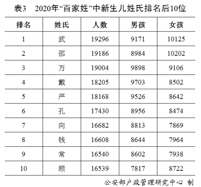 近日,公安部户政管理研究中心发布2020年全国姓名报告。2020年新生儿“爆款”名字有哪些?百家姓排名有何变化?不同年代使用最多的10个名字都有哪些?一起来看。