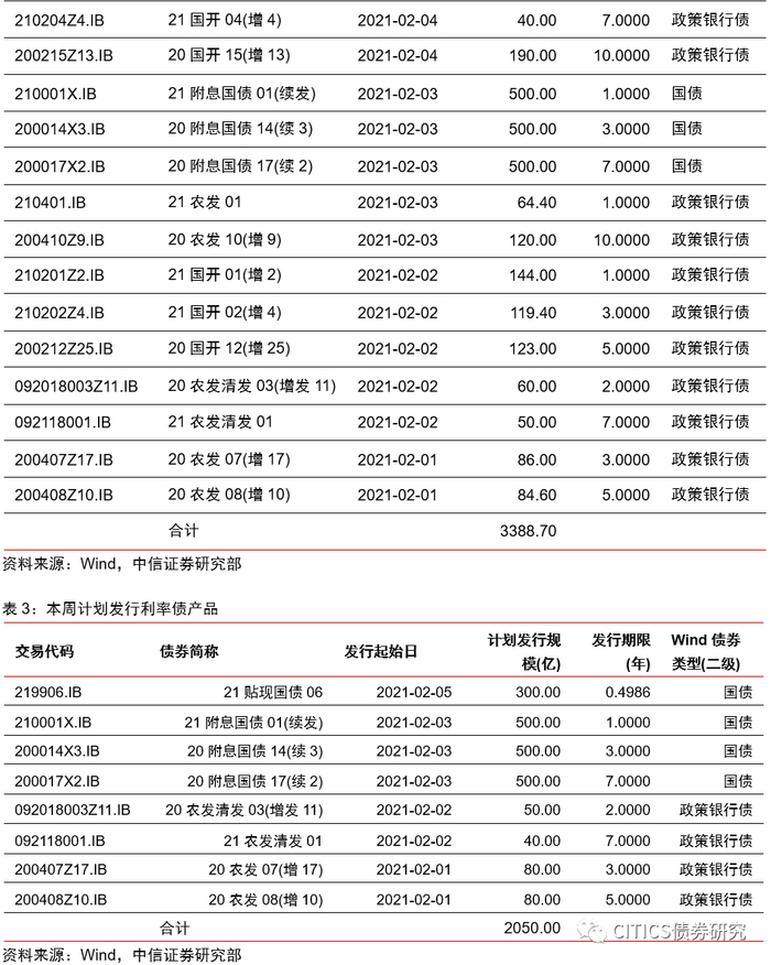 上周(2月1日-2月5日)一级市场共发行25只利率债,实际发行总额3388.70亿元。本周(2月8日-2月10日)计划发行4只利率债,计划发行总额220.00亿元。
