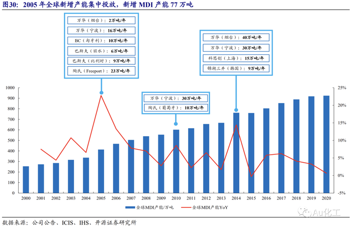 4.2.1、2014年万华化学烟台和宁波基地集中投产,全球MDI装置迎来第二个投产小高峰