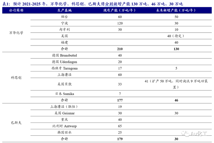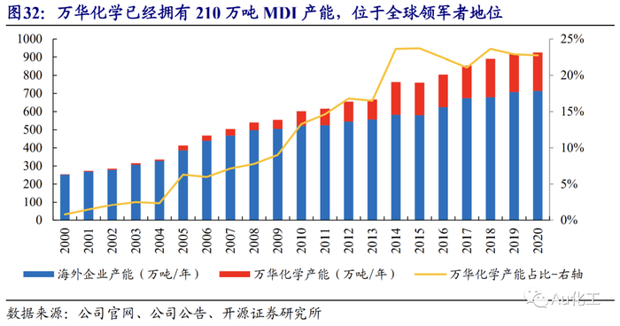 全球MDI供给变化:万华化学后来者居上,成为MDI全球领军者
