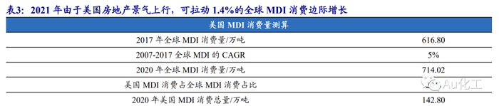 MDI行业寡头垄断格局稳定,美国房地产周期向上,或将直接和间接带动1.4%左右的全球MDI需求边际增长