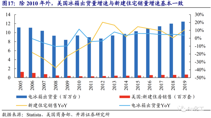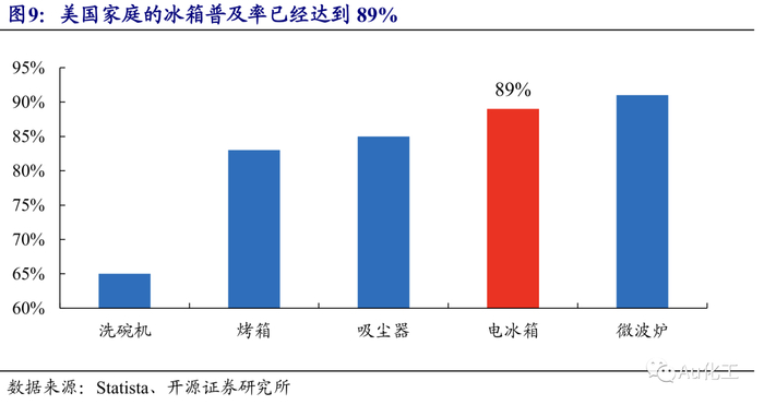 1. 对旧有冰箱的换新:根据美国当地电器维修公司Mr. Appliance的测算,美国家庭冰箱的使用寿命在10-18年,平均使用寿命14年。紧凑型冰箱的使用寿命在4-12年,平均使用寿命为8年。总体来看,美国家庭常规冰箱的更换周期约为10年。