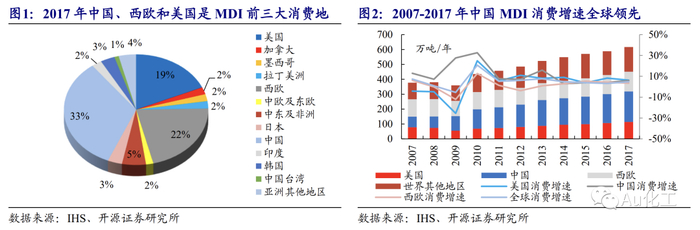 1.1 全球74%的MDI消费量来自中国、西欧和美国