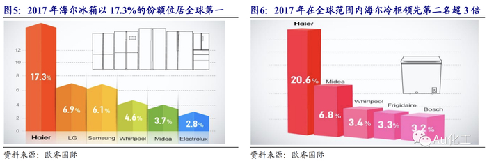 全球冰箱冷柜行业已全面进入“中国时代”。2018年初,全球权威市场调研机构欧睿国际发布了2017年全球大型家用电器零售量报告。据欧睿国际数据显示,2017年全球冰箱TOP3分别为海尔、LG和三星,其中,海尔冰箱以17.3%的市场份额位居全球第一;2017年全球冷柜TOP3分别为海尔、美的和惠而浦,其中,海尔领先第二名超3倍,且大于后四名之和,引领全球冰箱冷柜行业全面进入“中国时代”。2021年1月25日,欧睿国际再次发布2020年最新数据,数据显示海尔冰箱品牌零售量再次位列全球第一位,这是海尔冰箱品牌零售量连续13年蝉联全球第一,冷柜品牌零售量连续10年蝉联全球第一。由于中国是冰箱冷柜制造大国,目前已成为MDI消费的主力地区。