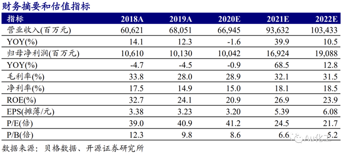 我们结合美国抵押贷款利率和“哈里森模型”推测,本轮美国房地产周期处于快速上行阶段,房屋销售量价齐升,我们认为这将直接和间接刺激建筑保温材料和冰箱冷柜市场需求,从而带动1.4%全球MDI消费边际增长。2021年海外装置或存不可抗力等因素,坚定看好万华化学作为全球巨头或将充分受益。我们上调公司盈利预测:预计公司2020-2022年归母净利润分别为100.42、169.24(+24.72)、190.88(+9.54)亿元,对应EPS分别为3.20、5.39(+0.79)、6.08(+0.30)元/股,当前股价对应PE分别为41.2、24.5、21.7倍,维持“买入”评级。