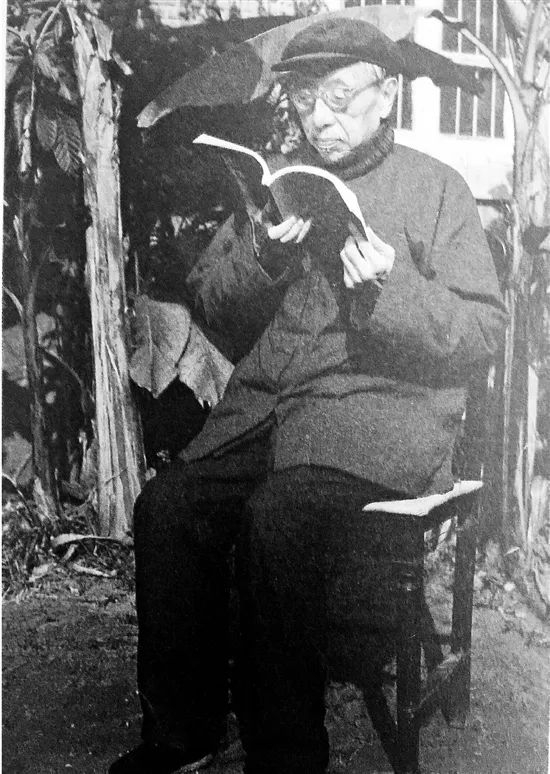 图为1983年姜亮夫在杭大新村住所的小花园里看书。(图片由采访对象提供)