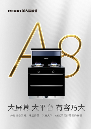再比如,美大集成灶A系列中的美大A8集成灶,搭载7吋触控大屏,WIFI智能联网,海量美食菜谱,大大提升了集成灶的操控性、智能化,同时,让枯燥乏味的烹饪过程变得乐趣十足。