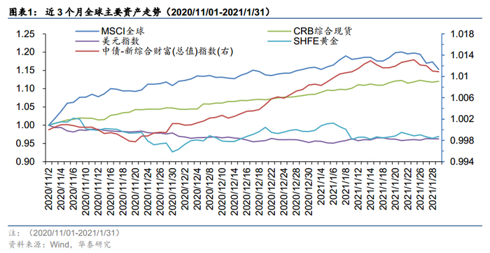 1月境内外大类资产表现:欧美股指、黄金小幅下跌