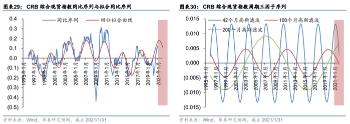 在本章中,我们将使用1月31日最新资产价格数据,运用华泰金工周期三因子模型,对各个大类资产当前所处的周期状态进行判断,并对其同比序列的未来走势进行拟合预测。